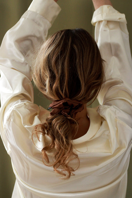 Discover the satin scrunchie's luxurious benefits: less breakage, hair protection, frizz prevention, and all-day hold! Elevate your haircare routine with style and care. Shop our best seller Nuggut Scrunchie Set now.